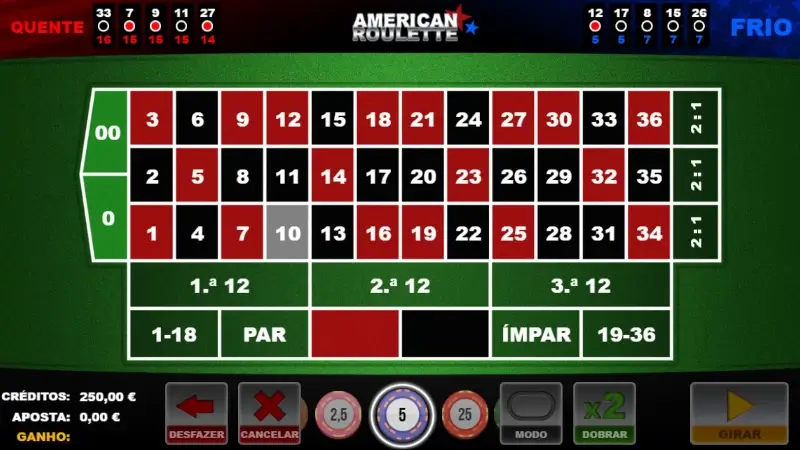 A maioria das salas de roleta americana permitem jogar grátis, o que é ótimo. Assim, pode perceber melhor as regras do jogo e testar estratégias, sem qualquer risco de prejuízo na sua banca.